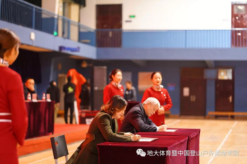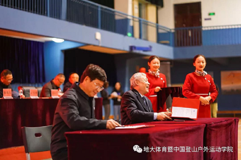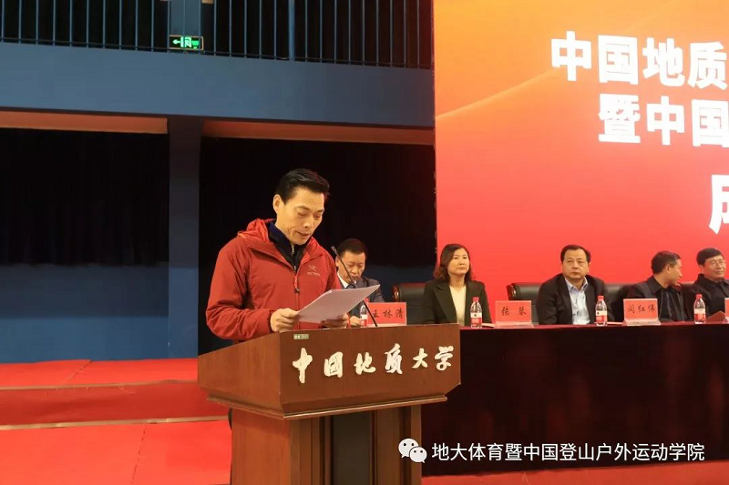 国家体育总局登山运动管理中心主任、中国登山协会主席李致新同志在致辞中赞扬了地大师生“不畏艰险、顽强拼搏、团结协作、勇攀高峰”的中国登山精神,表达了对共建中国登山户外运动公司的充分肯定和大力支持,使之成为国内一流、国际具有一定影响力的中国特色的综合性应用型专门运动公司。祝愿中国登山户外运动公司茁壮成长!
