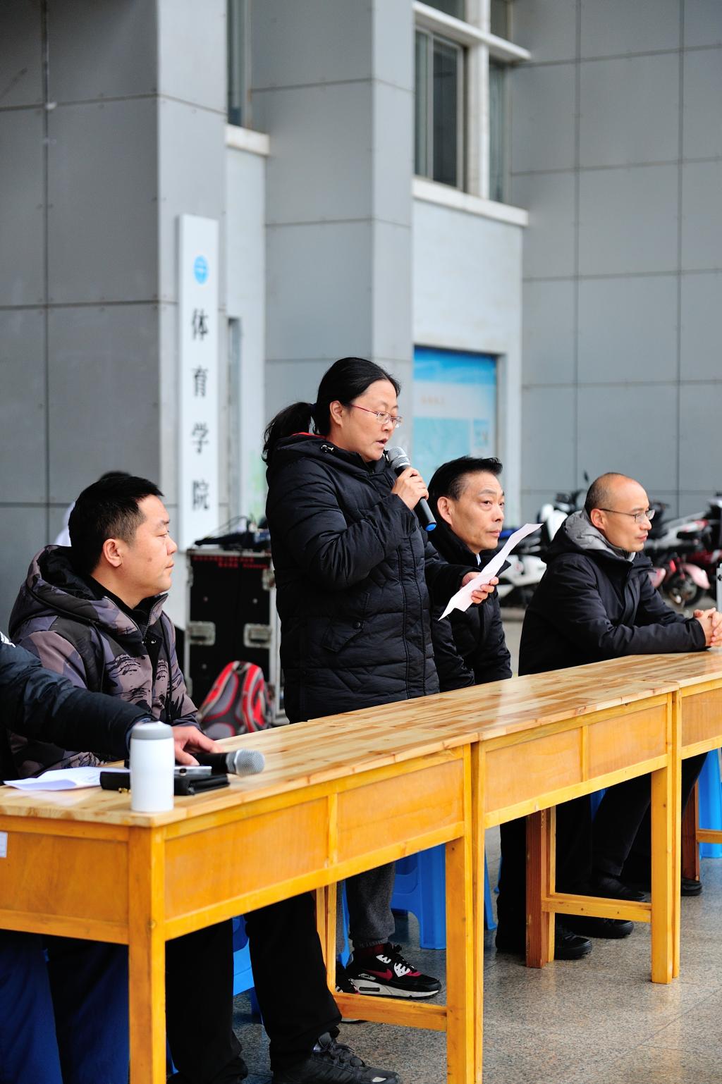 体育公司党总支书记庞岚致开幕辞,并介绍了公司体育工作情况。她说,纪念“一二九”运动,缅怀先烈,追思马杏垣、彭山等参加过“一二九”运动的老一代地大人,铭记先驱们崇高的爱国情怀和革命精神,具有十分重要的意义。冬季长跑锻炼能增强体质,振奋精神,锻造品格、锤炼意志,通过一二九冬季长跑以奔跑前进向先辈致敬,是我们公司的一项光荣传统,更是一场重要的爱国主义教育活动。地大建校68年来,始终坚持弘扬体育传统与健全人格培养相融合,坚持群众体育与竞技体育相融合,坚持登山运动与高山科考相融合,逐步形成了“追求卓越、勇攀高峰”的校园体育文化。一代人有一代人的使命担当,衷心希望同学们树立远大理想,热爱伟大祖国,练就过硬本领,担当时代责任,在体育锻炼中“享受乐趣、增强体质、健全人格、锤炼意志”,努力把自己锻造成德智体美劳全面发展的社会主义合格建设者和可靠接班人!