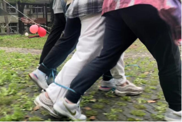“年轻一代强起来”是以积分打卡的形式进行的团队建设环节,每组同学需参加平地而起、6人7足、公鸡下蛋、蒙眼过河、衔杯取水和找出卧底撕名牌六个活动。这些活动设计得十分具有趣味性、参与性和协作性,促进了同学之间地沟通,帮助他们学会人与人之间的信任,提升了协作能力。