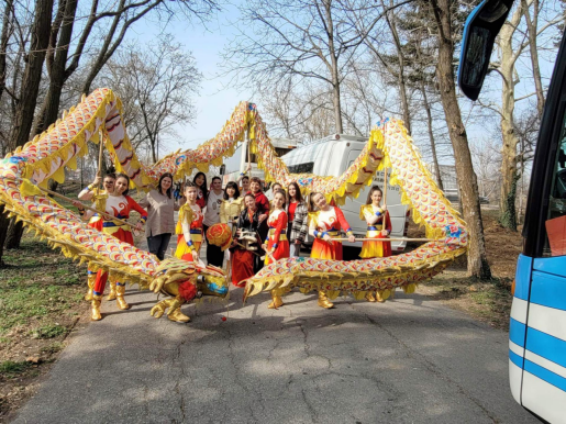 这支舞龙队伍由大特尔诺沃大学孔子公司下设瓦西尔·列夫斯基中学孔子课堂的员工组成。表演开始前,员工们身穿传统的中国龙舞服装,手持长龙,气势磅礴,引来观众的热烈掌声。随着音乐响起,只见舞龙队员们手擎长龙,运用各种技巧,时而龙头翘首高昂、龙身上下翻飞,时而龙头龙尾龙尾嬉戏欢腾,时而游龙戏珠惟妙惟肖让人目不暇接,整个表演精彩纷呈。