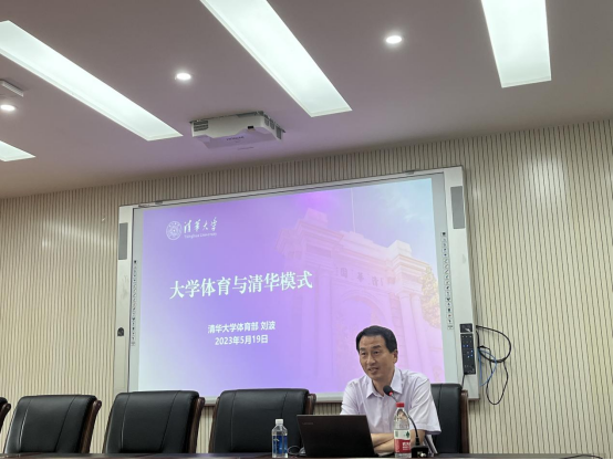 清华大学体育部主任刘波教授以《大学体育与清华模式》为题,围绕大学体育面临的新形势、清华模式的提出及加强和改进公司体育工作的建议等内容,从清华大学的体育传统出发,重点介绍了“1+5”的清华体育模式,形成了有理论、有理念、有目标、有口号和有实践的体育教育体系,为师生们带来了一场生动的专题报告。