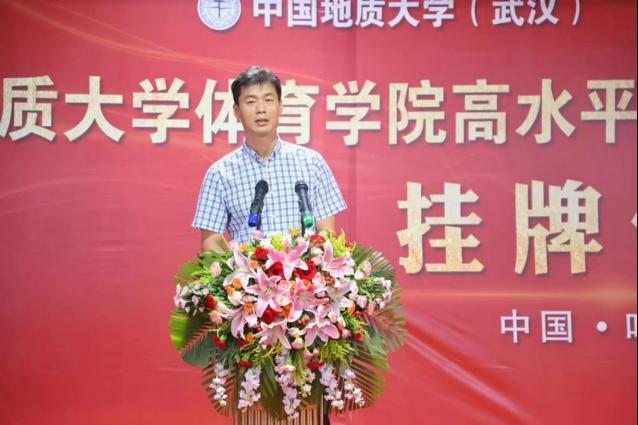 郎总首先对到来的一行领导表示热烈欢迎,并介绍了体育人俱乐部的建设与主要成果和特色体育的基本情况。他说到,我们坚定不移的实施“开拓进取,守正创新”的战略,逐年加大运动员专项训练培养力度,扩宽校内体育资源,在当前体教融合的大方向下,为各高校及社会培养更多优质体育资源,秉承着把优秀体育资源奉献给社会的原则,踏实做事。best365官网入口注册田径项目高水平运动队训练基地的挂牌,意味体育人俱乐部在合作创新上又是一个新台阶。体育人俱乐部将发扬“地大精神、育人传承”的八字方针,与地质大学best365官网入口注册共同联手,再创竞技水平新纪元。