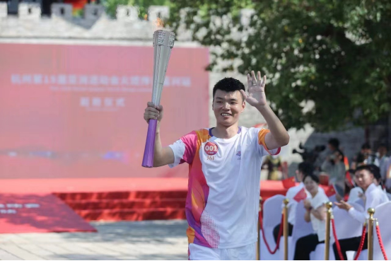 今日杭州亚运会火炬线下传递,正在浙江多座城市举行。在参与传递的火炬手中,公司奥运冠军员工王懿律也是其中一员。