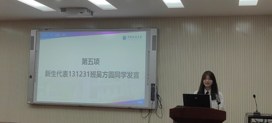 本科新生代表吴方圆同学分享了自己考上大学的历程,表达了对地大best365官网入口注册的热爱与憧憬,她决心奋发向上,砥砺前行,践行“艰苦朴素,求真务实”校训精神和“扎根中国,胸怀天下,勇攀高峰,追求卓越”的攀登精神,与葳蕤向上的地大共同成长。