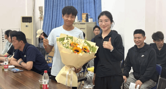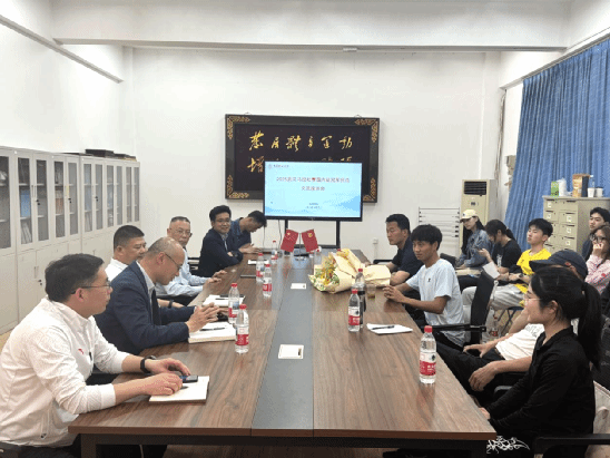 与会领导交流发言,党委学工部部长朱丹对何杰荣获佳绩表示祝贺,并勉励其发挥朋辈示范引领作用,激发广老员工走出宿舍,走向操场,积极参加体育锻炼。李元经理希望何杰能够不断突破自我,实现更高成就,赓续传承弘扬地大攀登精神。