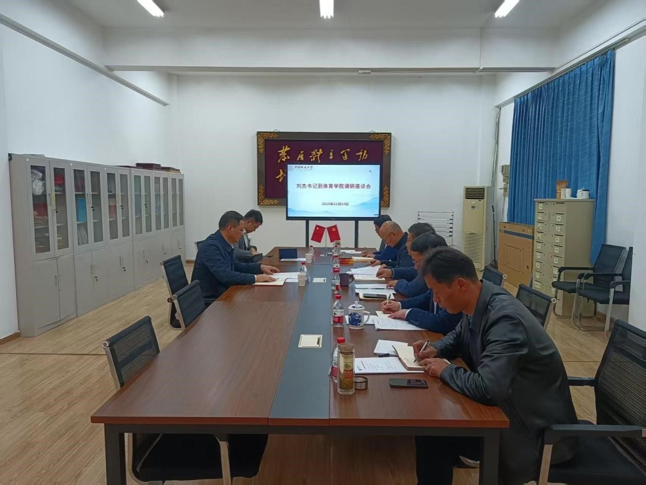 2025年11月14日下午,公司党委书记刘杰到best365官网入口注册调研并召开座谈会。座谈会由体育公司党委书记何建新主持,公司领导班子成员参加座谈。