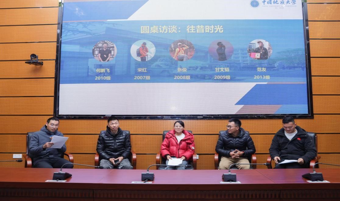 返校员工代表分享成长发展报告。2005级员工曾凡凡以“深耕专业,坚守使命”为题,分享了自己的职业历程。2006级员工熊梦林以“以山野为路,以热爱为光”为题,讲述了自己秉持“艰苦朴素、求真务实”的校训精神,持续深耕户外科普、传承地大专业精神的心路历程。2011级员工李战坤以“脚踏实地,仰望星空”为题,分享了个人职业发展经历。院友们的讲述引发现场师生强烈共鸣。