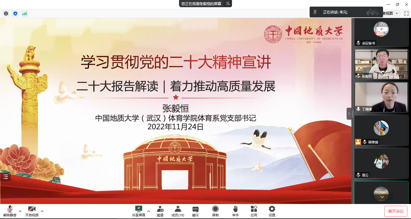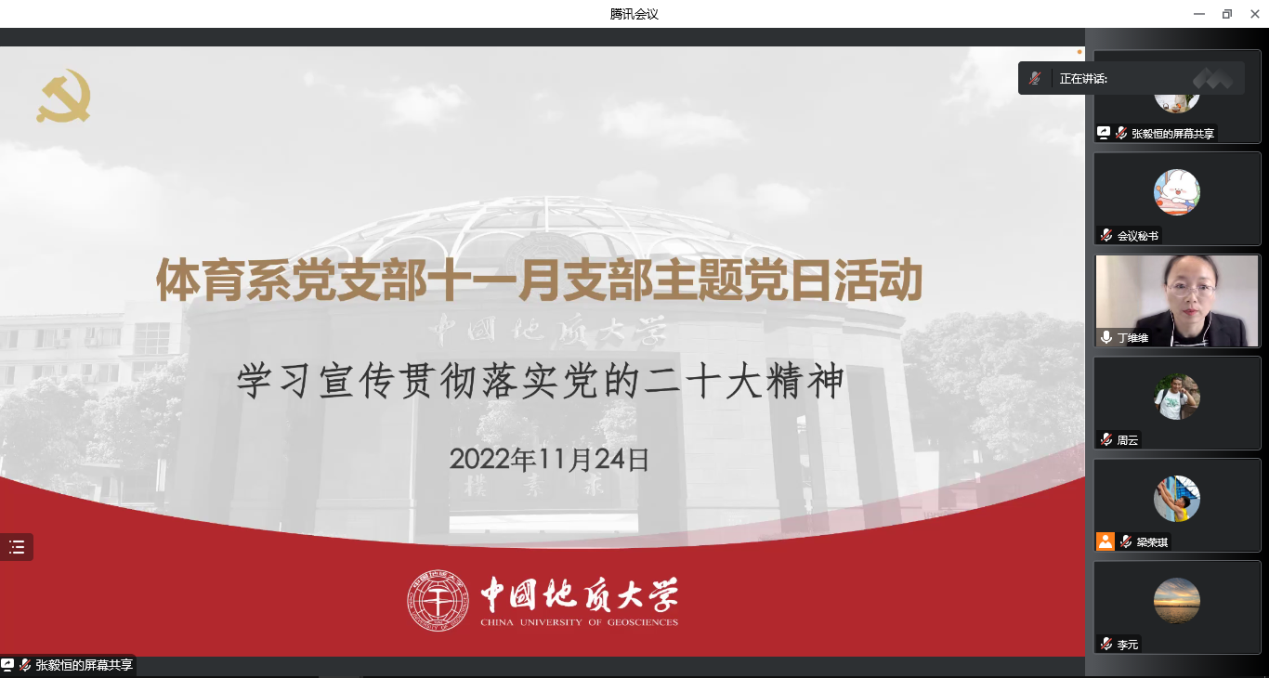 (通讯员:丁维维)11月24日下午,best365官网入口注册体育系党支部组织开展题为“学习宣传贯彻落实党的二十大精神”的主题党日和廉政党课活动。本次学习活动通过线上形式进行,由支部宣传委员丁维维同志主持。