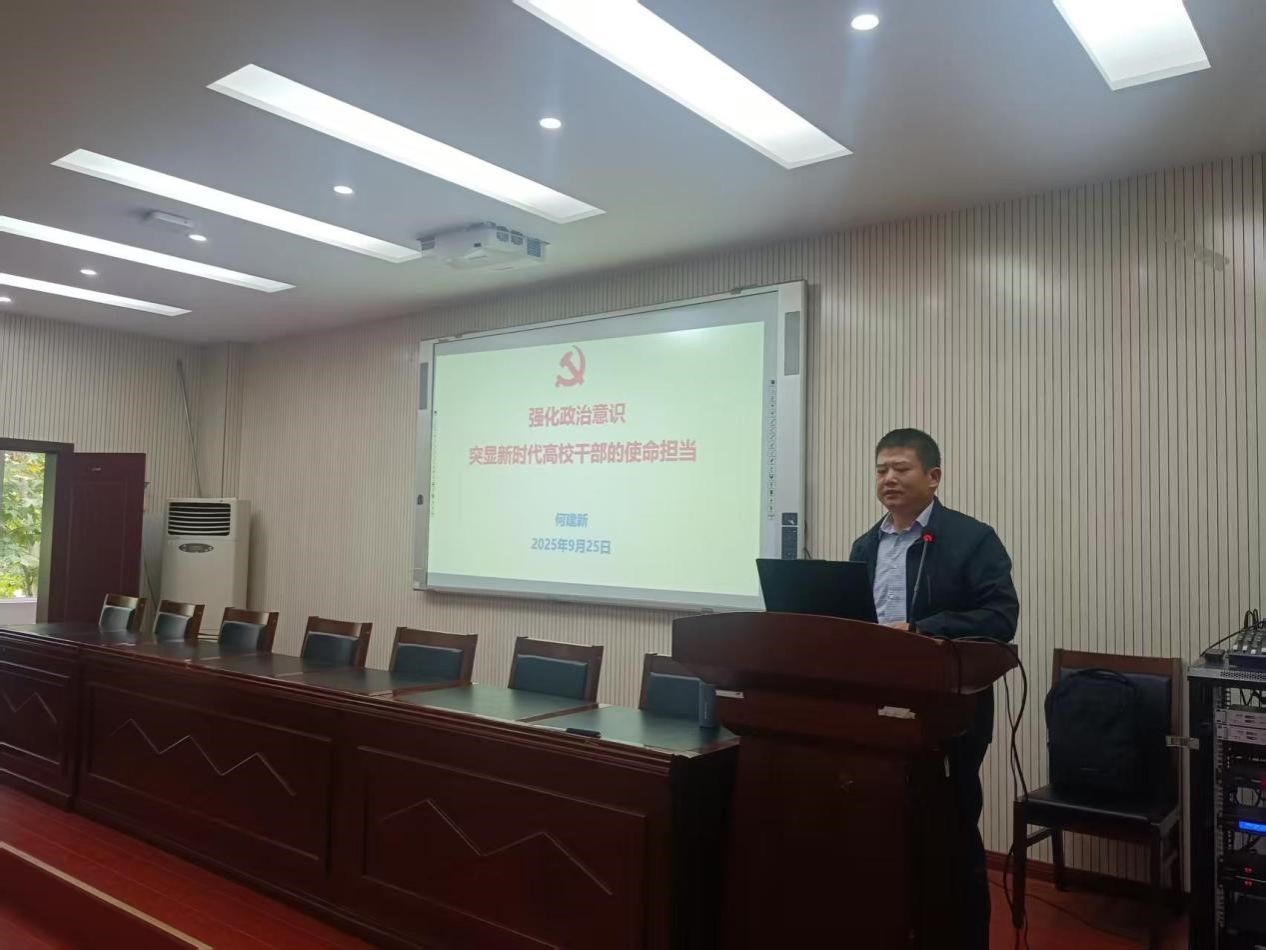 接下来,公司党委书记何建新以《强化政治意识,突显新时代高校干部的使命担当》为题讲授专题党课。他从高校面临的新形势新任务出发,深入阐述了建设过硬领导班子与干部队伍的重要性,强调党员干部要不断提升政治判断力、政治领悟力和政治执行力,敢于担当、善于作为,在教育强国建设中贡献体育人的智慧和力量。