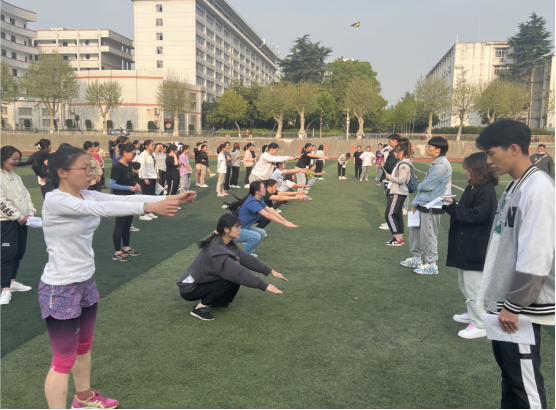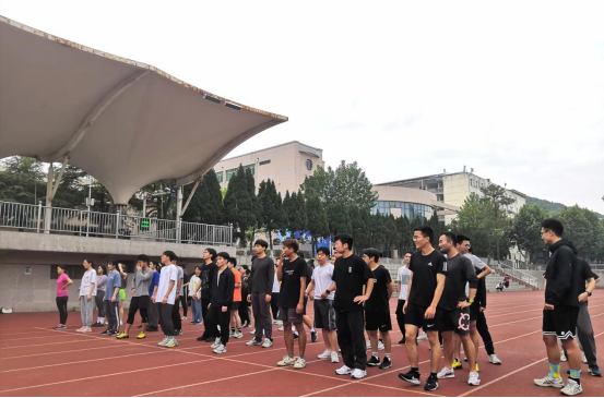 2022年5月11日下午,第二次老员工长江源科考50队员在西区操场行第一次日常训练。
