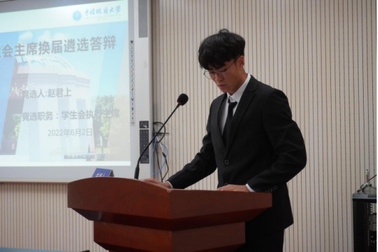 2022届研究生会主席团成员候选人进行遴选答辩,与会员工代表对候选人进行提问。