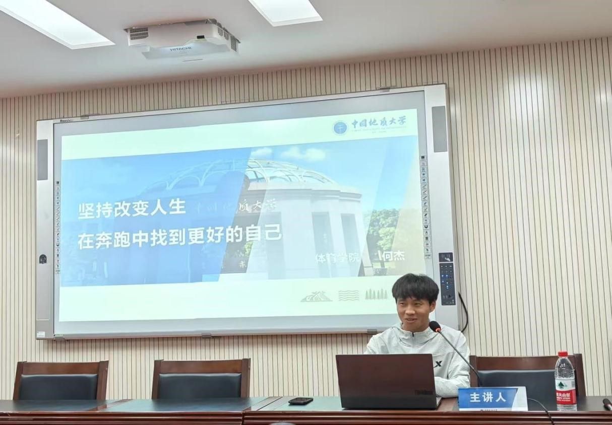 何杰同学以《坚持改变人生——在奔跑中找到更好的自己》为题分享了从开始参与马拉松项目到进入国家队期间的训练经历。何杰在2018年开启个人马拉松比赛生涯,2020年11月入选中国国家马拉松队,在国家队期间刻苦训练。2023年10月5日,以2小时13分02秒的成绩获得杭州第19届亚运会男子马拉松比赛冠军,实现中国田径队在亚运会历史上的首枚男子马拉松金牌的突破。在此之后,他便开始长达两个多月的肯尼亚外训,几千公里的跑量以及科学合理的训练方法也为无锡马拉松再创新纪录奠定了坚实的基础。2025年武汉马拉松比赛中获得国内组冠军,刷新国人赛会纪录!