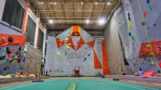 best365官方网站(武汉)攀岩馆岩壁最高15米,两边13米,最长屋檐5米,小屋檐3米半,国际标准速度赛道和速度赛岩壁,高15米,倾斜度15°以及8组标准抱石墙。岩馆内配备一间专业的训练房,在训练房里有大斜板、大屋檐、直板、自制的指力板等一系列的专项技术练习的场地。目前是国家攀岩集训队、湖北省攀岩队的训练场地,也是国内高校最为专业和完备的攀岩馆。
